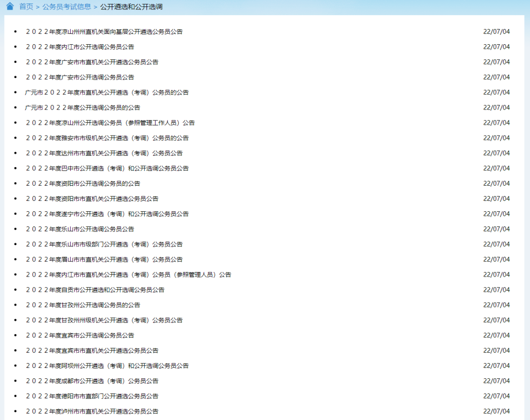 根据年度工作安排,结合各地选人用人需要,7月4日,四川省成都市等19个市(州)集中发布公告,同步启动年度市(州)以下机关公开遴选(含考调)和公开选调工作。