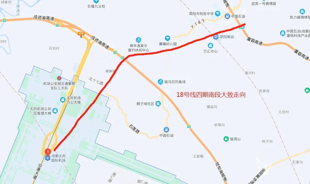 线路分为南北段,北段由火车北站向北延伸至露天音乐公园附近的凤台三路站,与成德S11线换乘;南段由建设中的官堰站向东延伸至高铁简阳南站,18号线续延伸到简阳南站,极大便利简阳融入成都都市圈。