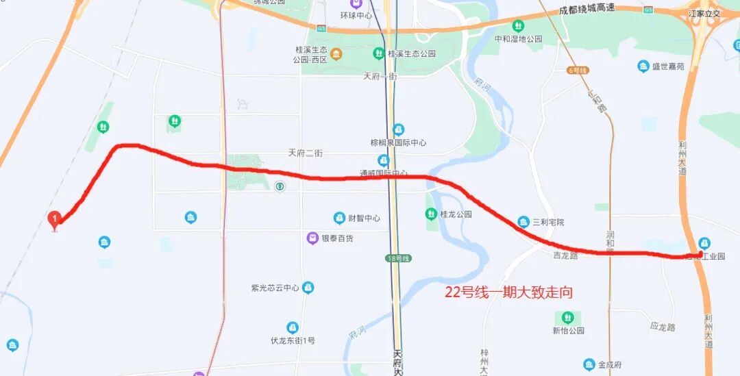 地铁22号线,起于双流区临家村附近,止于中和应龙。依次途径大源西、大源、高新、中和板块,与新建的地铁20号线相连。或许能极大地缓解天府二、三街目前拥堵不堪的通勤现状。