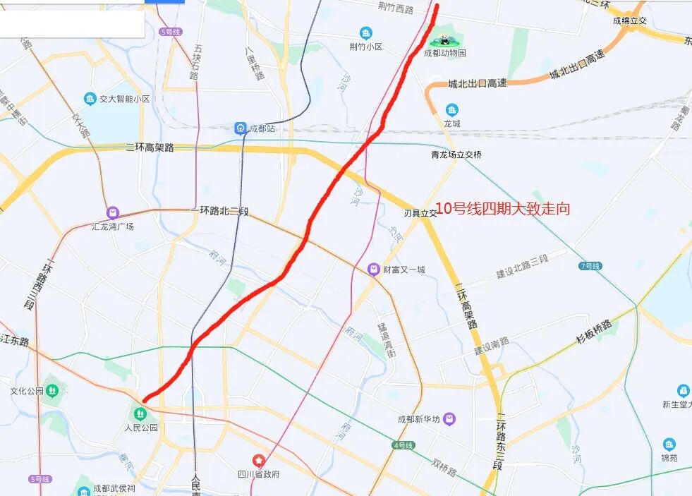 10号线四期将进一步向北延伸至熊猫大道附近,与9号线换乘。途经梁家巷、城隍庙、驷马桥、昭觉寺、紫荆中路、熊猫大道等片区,这条线路建成以后,将极大地改善城北交通现状。
