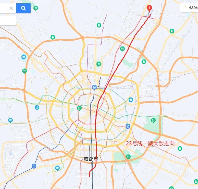 地铁23号线,起于高新区益州大道与盛邦街交汇处附近,止于新都区西南石油大学。线路从主城多个区域穿过,可与多条地铁线换乘。