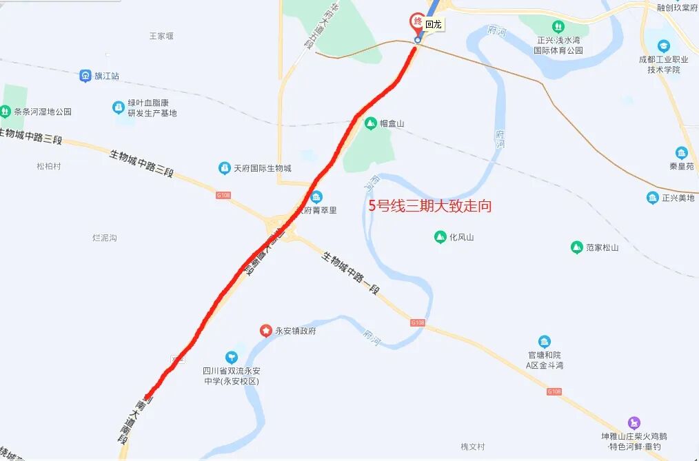 地铁5号线南段,从回龙站沿着剑南大道向南延伸至天府国际生物城以及永安等区域,将填补天府国际生物城等产业园区没有地铁的空白。