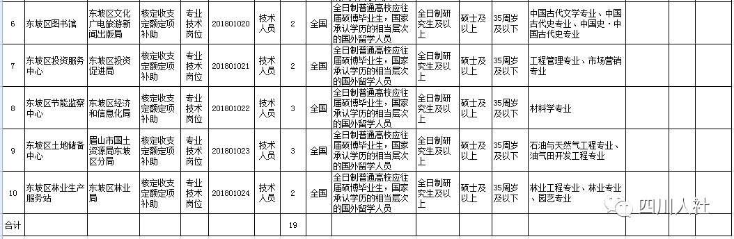 东坡区事业单位考核招聘高层次和紧缺专业技术人才19名