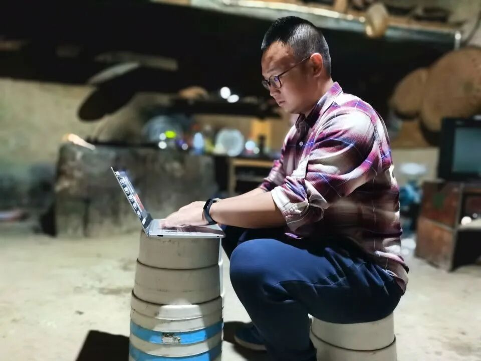 封面新闻记者伍雪梅在地震灾区连续站了近10小时后,在三轮车上写稿