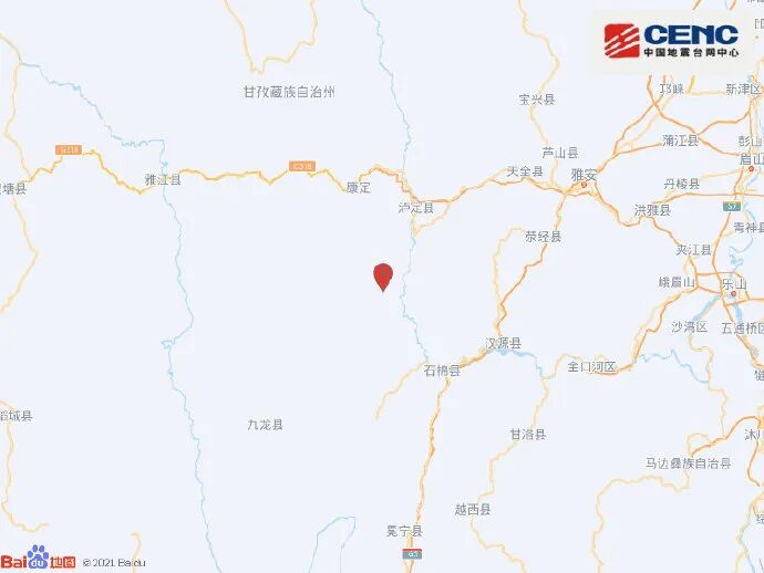 中国地震台网正式测定:09月05日12时52分在四川甘孜州泸定县(北纬29.59度,东经102.08度)发生6.8级地震,震源深度16千米。