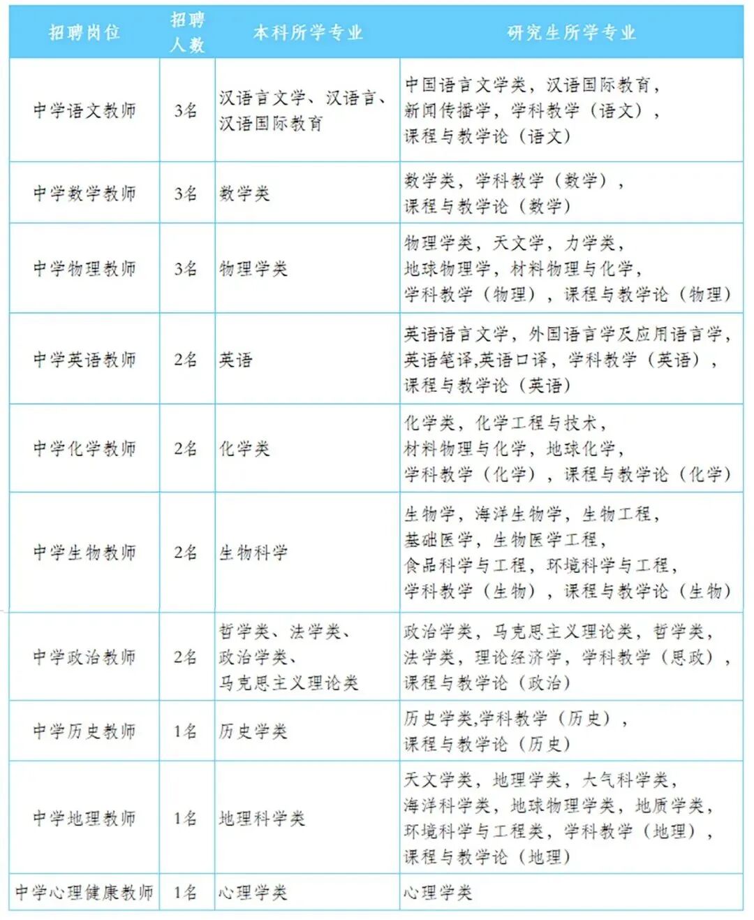 (1)学科教师:语文、数学、物理、化学、生物、政治、历史、地理、体育、心理健康学科