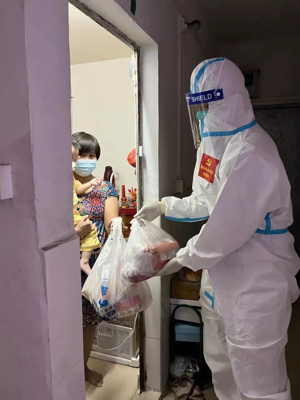 为了让不能线上购物的居民都能得到充足的物资保障,海珠区在管控区域内采取“政府派发爱心包+居民网购”的工作机制,每两天向每名居民派送一袋沉甸甸的爱心物资包。