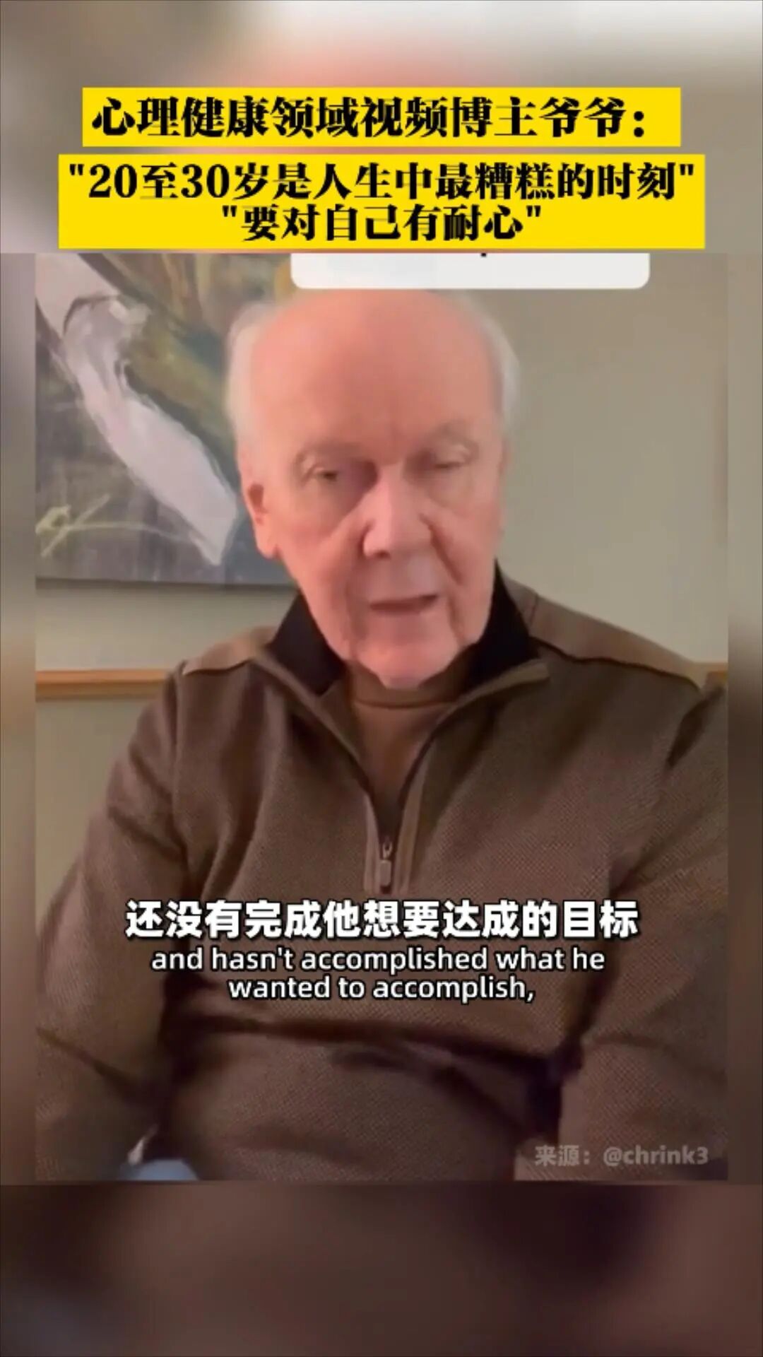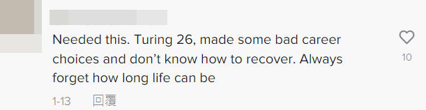 “这番话对我很有帮助。我该26岁了,我做了一些错误的职业选择,还不知道如何治愈自己。我都忘了人生其实挺长的。”