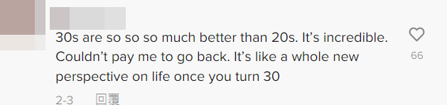 “三十岁比二十多岁好多了。真的不可思议。给我钱我都不想回到那时候。过了三十岁后,仿佛就拥有了全新的视角看待人生。”