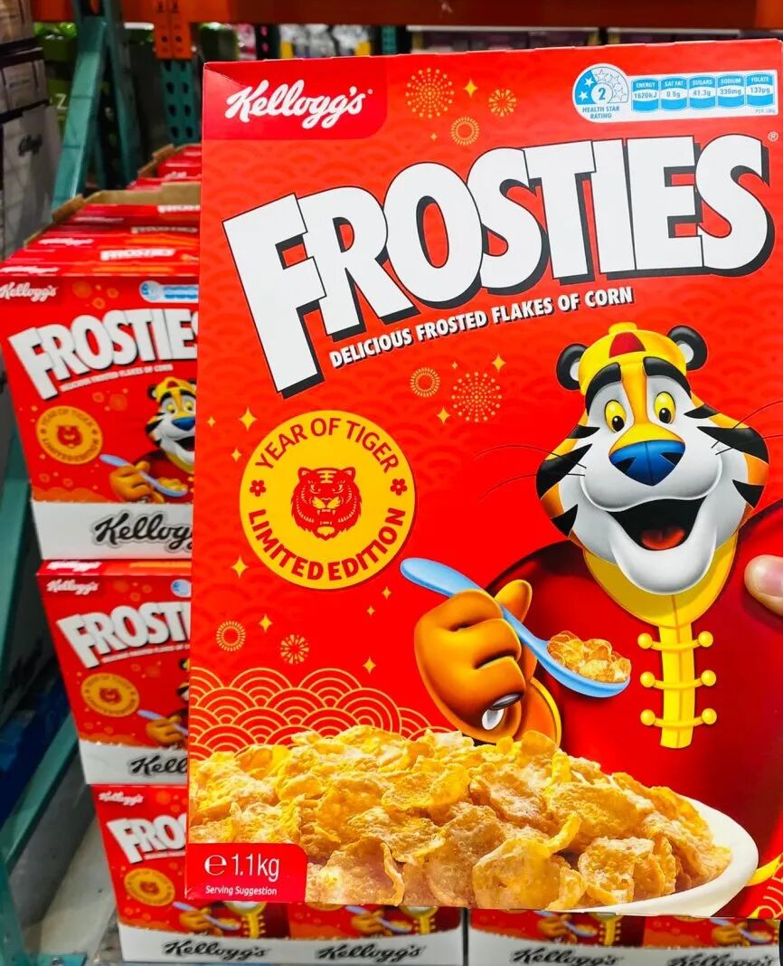 Frosties虎年限定麦片,包装真的非常喜庆。麦片是玉米麦片甜甜的很薄很脆,配上牛奶简单的早饭搞定。