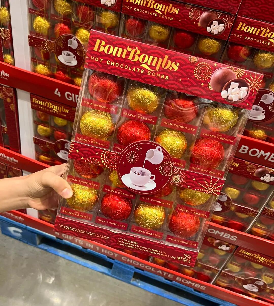 可以冲泡开的炸弹巧克力球,里面总共有多种不同的口味。用热牛奶冲泡又好吃又好玩,而且颜色也非常的喜庆