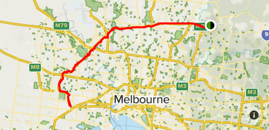 在本季度,由于Sydney Rd 和 Edgars Rd之间的 M80 Western Ring Rd 的道路工程升级,沿线的限速从 100 公里/小时降低到 80 公里/小时。