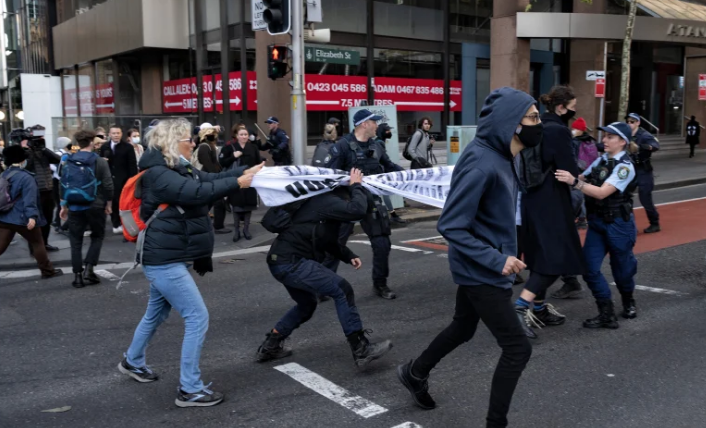 上午 9 点前,抗议者开始在 CBD 散开。该组织打算在午餐时间卷土重来。新南威尔士州警方估计约有 50 至 60 人参与了抗议活动。100多名抗议者阻塞了CBD的街道。