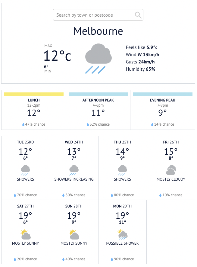 墨尔本最低气温降至 7 摄氏度,周三最高为 13 摄氏度,周四最高为 14 摄氏度。预计到周末气温会上升,最高气温将或将达到 20 度。
