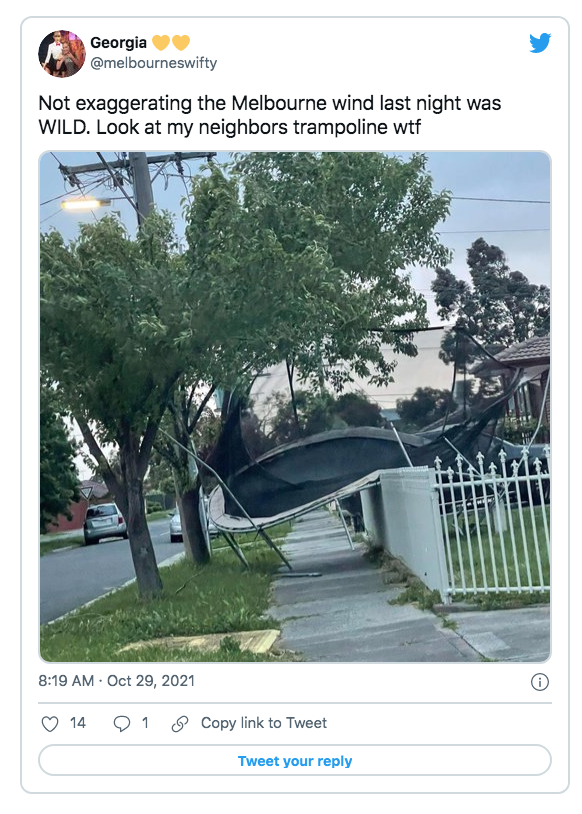 墨尔本机场记录的阵风为每小时 119 公里,而圣基尔达记录为每小时 115 公里。