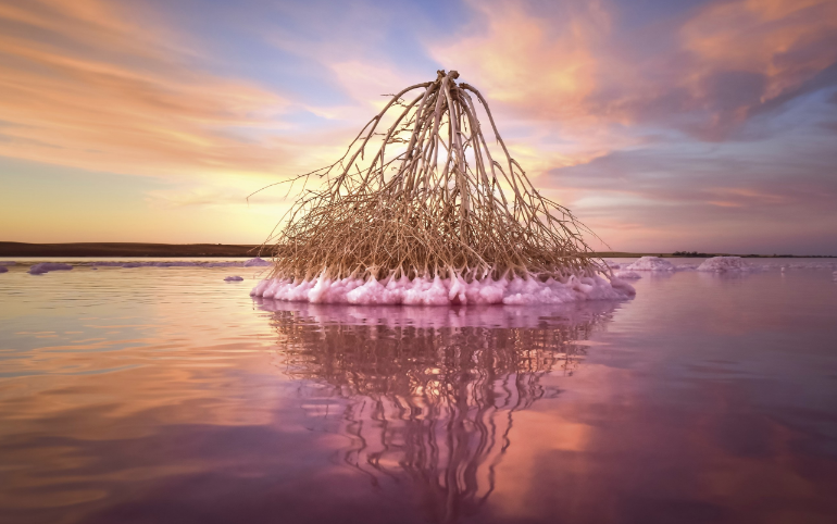 被誉为天空之境的Tyrrell湖,极其纯净如镜面一般,当太阳缓缓升起,湖水变成了粉红,当夜色临近,在星空下拍下剪影。由于是盐湖,水位总是有变化,一般7-10月是去此地最佳时间~
