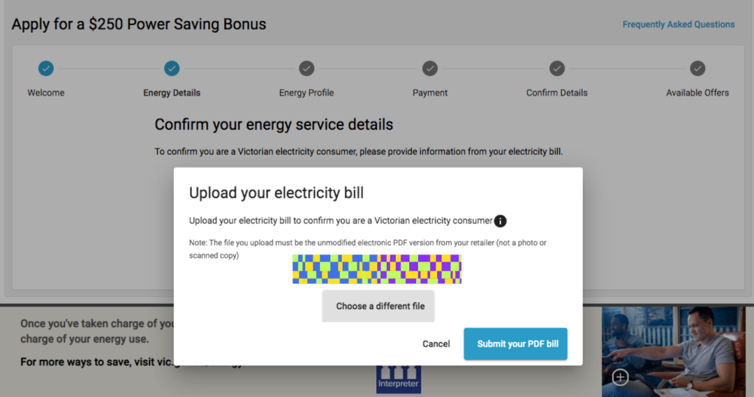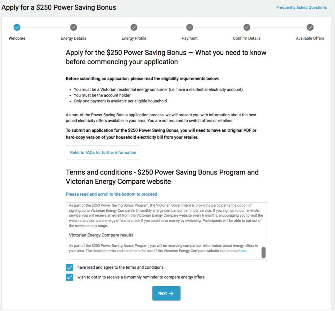 1⃣️首先进入https://compare.energy.vic.gov.au/官网,你会看见这个黄色的notice,直接点灰色按键开始申请: