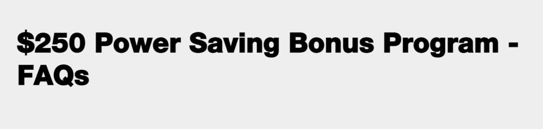 不过值得注意的是:new $250 Power Saving Bonus program每个家庭只能领取一次,每个人也只能领取一次。