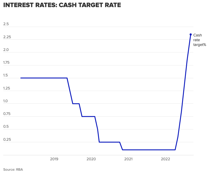 上周二,澳大利亚储备银行 (RBA) 决定将现金利率目标从 1.85% 提高 50 个基点至 2.35%。