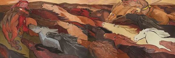 《牧马图》 水墨纸本设色 145X547cm 2017年