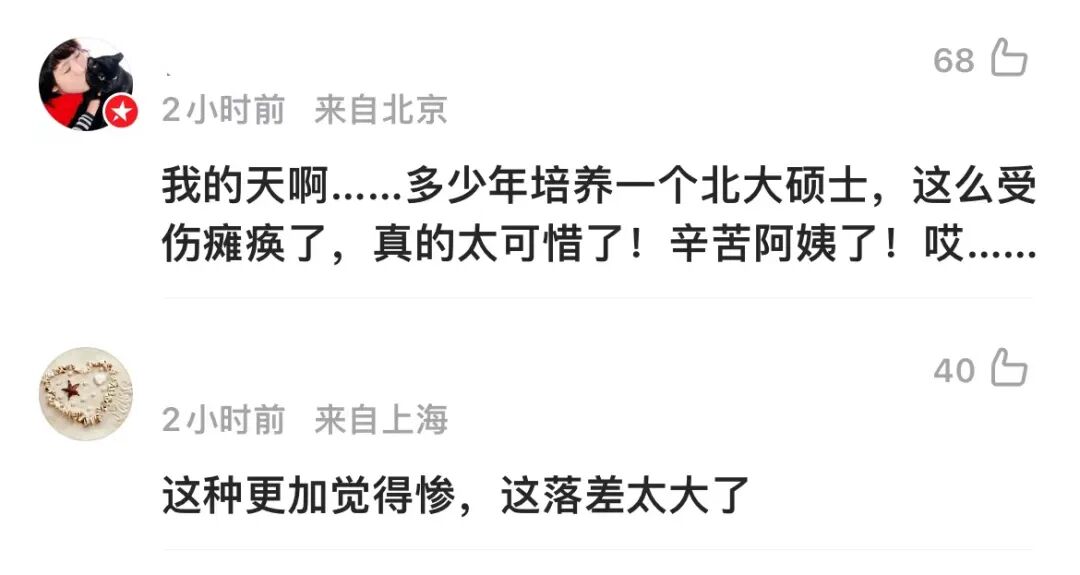 青峰路社区人员告诉澎湃新闻,其儿子系北大硕士毕业,确瘫痪十多年,政策保障到位。