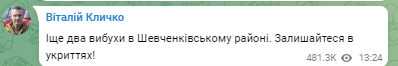 当地时间约8点24分,克里琴科再次发文称,舍甫琴科夫区又发生两起爆炸。