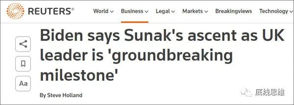 苏纳克胜选当天(24日),美国总统拜登回应称,他作为英国首位印度裔首相是“开创性”的。