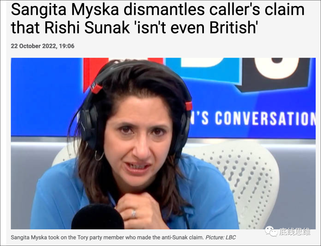伦敦广播电台(LBC)22日报道,保守党成员杰瑞来电对主持人米斯卡说苏纳克在大家眼里“甚至都不是英国人”。