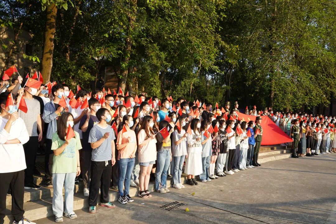 随后,航空航天学院2020级学生倪梓洁带领大家宣誓。“强国有我,振兴有我,未来有我,中国有我”的誓词掷地有声,响彻校园。在《歌唱祖国》激昂高亢的歌声中,师生们挥舞着国旗,共同祝福伟大祖国生日快乐。
