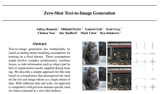 2021 年 1 月,论文《零样本文本到图像生成》发表(另请参阅OpenAI 的博客文章),其中介绍了 DALL-E 的第一个版本。