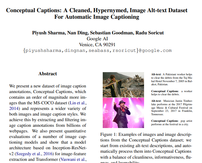 2018 年 7 月,《概念性标注:用于自动图像字幕的清理、上位化、图像替代文本数据集》论文发表。