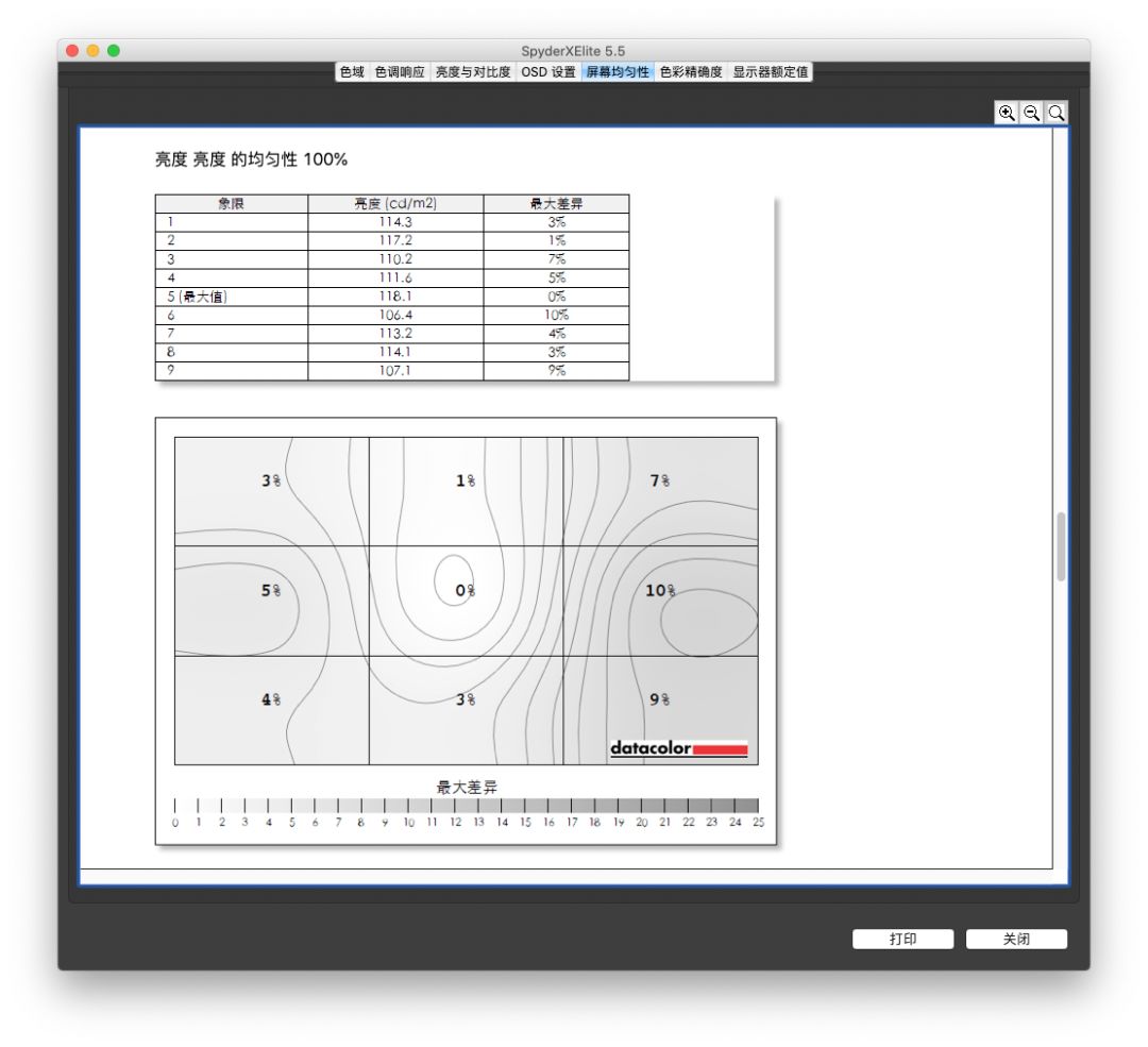 由于本身就是定位在游戏娱乐的电竞屏,小米曲面显示器在色彩、分辨率、响应时间几个方面也着重下了功夫。显示器采用了 VA 宽屏面板,这种面板的优点突出,比如色彩绚丽,可视角和屏幕对比上有优势,能够将暗处画面显示更清楚;缺点也同样明显,色视角相对较差,在大角度观看时容易泛白。从官方宣传的数据上来看,亮度 300cd/m² 或许只是中等水平,但分辨率达到 3440×1440(可算作 2K+),屏幕对比度达到 3000:1,还拥有最高 4ms 的 GtG 响应时间、144Hz 的高刷新率和 AMD - Free Sync 技术,这些参数足以保证游戏时画面流畅且无撕裂。只听我们的表述或者看数据或许还是难有直观感受,为此我们也使用了 Spyder X Elite 校色仪对小米曲面显示器做了一组测试。顾名思义,亮度越高的显示器越能在明亮环境中使用,对比度越高则能展现出高光阴影的强度。这个环节中,我们测得小米曲面显示器能达到 330+cd/m²,超过了官方宣传的 300cd/m²,可轻松满足室内使用需求,日常使用时设置在 20%~50% 是比较舒服的数值。或许因为 Spyder X Elite 光学引擎测试精度更高,多次测试下小米曲面显示器的对比度都在 700:1 左右,而网络上也有用户使用 Spyder 5 Elite 跑出了 1700:1 的数值(50% 亮度设置下),测得数据与宣传中的最高对比度 3000:1(TYP)还有差距。国际上规定以一年平均正午阳光 6500K 为标准色温的基础白点,而小米曲面显示器不同亮度下的白点恰好都在 6500K 左右,色温没问题。对显示器来说,最适合描述屏幕色域的标准有三个,按覆盖的颜色范围排列为:sRGB < Adobe RGB ≈ P3。测试结果显示,除了 100% 的 sRGB 外,小米曲面显示器还能覆盖 84% Adobe RGB 和 89% P3 色域,属于中上水平,画面足够鲜艳,对于大多普通用户来说绰绰有余了。需要再次强调的是,由于不支持 100% 的 Adobe RGB 和 P3 色域,这款显示器不太适合色彩处理相关工作者。通常我们用 ΔE 标准来评价色准,数字越小代表偏离越小,色彩还原能力越强。在 48 色测试中,小米曲面显示器色准最大值 4.60,最小值 0.26,平均值 0.87,蓝绿色系略过饱和,大部分色彩 ΔE 值都在 1 以下,成绩过关。屏幕均匀性由两部分组成,一是色度均匀性,二是亮度均匀性。色度均匀性测试中,黄色区块代表屏幕每个区块的色温值与标准值差值,数值越大颜色越深。小米曲面显示器左边区块 ΔE 最大值达 3.1,人眼基本分辨不出色彩的差异。大尺寸曲面屏对于漏光控制本就比较困难,小米曲面显示器的屏幕亮度与 D65 标准值最大差异为 10%,其实已经比一些专业级显示器都好了,这个屏幕均匀性还是在合理范围内的。Spyder X Elite 对小米曲面显示器整体额定值评分为 4.5(满分 5 分),一个非常高的分数了。小米曲面显示器售价 2499 元,再次用实力证明了「价格屠夫」不是徒有虚名。在此前,3000 元以下价位 + 超宽屏筛选条件下的显示器并没有什么知名品牌,消费者很难去做对比选择,而小米打进市场后,做到了同配置产品中的最低价,同价格产品中的最高配。![]()