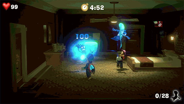 又怂又勇敢?这样的路易吉爱了 《路易吉洋馆 3》的游戏剧情很简单,路易吉和马力欧、桃花公主、奇诺比奥一行人来到一座洋馆度假。虽然这个洋馆表面光鲜,工作人员却没有一个正常人。▲洋馆老板贾素妍到了夜晚,洋馆露出了它本来的样貌,老板贾素妍伙同害羞幽灵王把大家都关进了画框里,只有胆小的路易吉逃过一劫。而我们的主角路易吉就需要在哎呦·喂博士、鬼怪狗等朋友的帮助下,一边与鬼怪战斗、探索洋馆、获取电梯按钮,一边收集金币钻石、解救朋友。跟随剧情上手游戏,在被 Switch 出色的画面表现、光影效果和震动反馈拉入剧情深陷其中的同时,你还会被丰富的场景互动震撼,利用主要道具「鬼怪吸尘器」,你几乎可以吸引场景中所有可以移动的物品。在每一处看起来有些蹊跷的细节里,利用吸尘器、暗光灯、傀易吉等等方式,总能找到一些隐藏的金币、每层散落的钻石或者通关的方法。▲用吸尘器操作魔术箱不止是游戏场景,《路易吉洋馆 3》对路易吉的刻画也非常有趣,按下十字键他会发出颤抖着呼唤「马力欧」的声音;突然移动的垃圾箱、出现的老鼠蜘蛛也会把路易吉吓得一激灵;每到达一个新的楼层,又怂又想去救朋友的他轻悄悄的从电梯里探出头的样子……所有的角色表现都让人忍俊不禁,想要帮他一把。《路易吉洋馆 3》延续了前代的游戏玩法,用闪光灯闪瞎幽灵, 再用吸尘器吸引拉扯,在本作中吸住后还可以按「A」键背摔鬼怪。配合 Switch 的震动,刺激又打击感十足的背摔,恍惚让人有种「路易吉才是最吓人的那一个」的错觉。特别是在 BOSS 战中,经过几轮试验探索终于找到了 BOSS 的弱点,闪光灯一亮,拉扯背摔,让我们在紧张的洋馆探索中尽情的释放压力,十分爽快。吸、吹、暗光灯!神秘洋楼处处惊喜 《路易吉洋馆 3》中的操作其实并不复杂,吸尘器的吸和吹、用来照出隐藏物体的暗光灯、可以发射出去作为吸引点的皮搋子、闪瞎鬼眼的强光灯、可以穿过狭窄地方的傀易吉以及标志性的过肩摔,一共只有七种。这简单的七种操作,在游戏中缺一不可,又让人回味无穷。不说游戏中从植物到垃圾桶,从地毯到窗帘的无数可用吸尘器吸引的设计,也不谈用暗光灯照射就会出现金币的各种隐藏物体。单说在本作中新加入的傀易吉,在游戏中都玩出了很多花样。与路易吉不同,傀易吉作为一个工具人,并不像路易吉那么感情化,他完全不惧怕鬼怪。在鬼怪吓唬过他之后,傀易吉依然能保持一脸的淡定,让鬼怪都感到疑惑。▲ 鬼:「咦,他好像不怕我们。」游戏中,傀易吉凭借着柔软的身体,可以进入许多路易吉无法进入的场景,比如被栅栏围着的房间, 只有傀易吉才能进得去。或者窄小的管道,也只有傀易吉才能进去探索,寻找隐藏的金币或者通关的按钮。他可以当作人质,帮助路易吉抵挡一次伤害;可以制造鬼怪的空隙,以便路易吉闪瞎鬼眼;甚至在一些场景中,如果没有傀易吉的帮助,就无法通关。而且在游戏中,傀易吉不仅可以作为一个工具,也可以成为本地双人游玩时的 P2,和小伙伴一人控制路易吉,一人控制傀易吉,就如同《超级马力欧:奥德赛》中的马力欧与帽子凯皮一样,一起探索每一个游戏场景。▲图片来自:任天堂官网虽然类似,但傀易吉与凯皮拥有独立人格的模样又有所不同。他是用果冻状物质「傀」制成的,虽然像是一个没有感情的工具人,却在每次离开时都为路易吉竖起大拇指,在遇到危险时,傀易吉也总能帮助路易吉化险为夷,他就是路易吉闯关时的坚强后盾。而在故事的最后,他也向担心他安危的路易吉挥手致意,让路易吉放心——傀易吉就像是路易吉的勇敢面,告诉鬼怪,我路易吉虽然胆小,但绝不怕事。而作为游戏进行的场景,每一个楼层也都有自己独特的风格。客房、商场、餐厅、音乐厅、摄影棚、城堡、庭院、沙漠……在每一个楼层中,不同风格各异的场景带来了丰富的解谜方式。正是因为这丰富的场景设计,每次获得一个新楼层的电梯按钮,我都会随着电梯门的缓缓打开,和路易吉一起期待新的楼层会给我带来什么样的新惊喜。和其他马力欧系列游戏类似,在遇到 BOSS 之前,场景中有很多暗示和提示,结合场景提示,了解 BOSS 套路,即使实在无法通关,哎呦·喂博士也会跳出来给你提示,基本不会出现卡关的情况。昏暗的洋馆、胆小的路易吉、爽快的过肩摔,再加上丰富的场景中细致生动的 BOSS 刻画,让你在不经意中便深陷其中,感受洋馆里那带有一丝幽默的恐惧感。除了故事模式以外,《路易吉洋馆 3》被官方重点宣传的多人模式也是一大亮点。「游乐场」模式支持最多 8 人本地竞争,通过收集金币、抓捕幽灵或者大炮打靶等形式来决定胜负。聚会中除了尬舞派对,和朋友一起欢乐热闹的抓鬼打靶是一个很不错的选择。比起「游乐场」的轻松愉快,在线 PVE 「恐怖高塔」就紧张刺激了很多。四名玩家组队,在规定时间里尽可能多的抓捕鬼怪,场景混乱但十分欢乐。只可惜 Switch 不支持语音沟通,一旦被场景困住,就算你按下多少次「救救我」也无济于事。对比丰富的剧情模式,多人玩法可以说是锦上添花。老实说,身边玩 Switch 的朋友并不多,联机又无法语音打字交流,一旦被困或者需要队友帮忙时智能干着急。相信在国行版 Switch 发布之后,多人模式会有更好的表现吧。进入洋楼,一起来抓鬼吧! 在查询游戏资料时,意外发现日语「