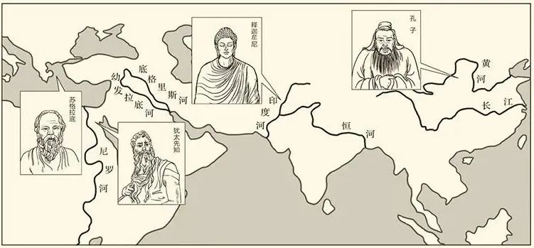 这里包括中国的老子、孔子,印度的佛陀,还有耆那教的大雄,犹太教的一神教,以及古希腊的苏格拉底、柏拉图,都是在这个前后出现的一批宗教和哲学的天才人物。