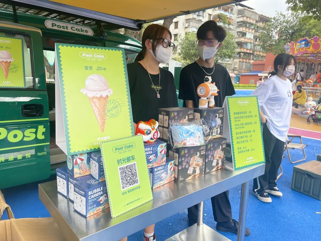 邮政车吸引大批市民关注,这里有文创雪糕卖哦。