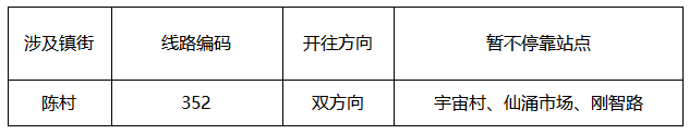 五、自2022年12月1日起,公交352线路部分公交站临时取消停靠。