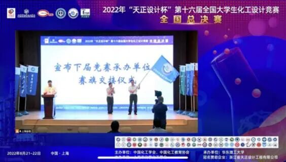 全国大学生化工设计竞赛由中国化工学会、中国化工教育协会主办,是全国高校化工专业级别最高、影响力最大的年度大赛之一。从2007年至今已举办16届。本次大赛共有来自415所高校的2939支队伍参赛,参赛高校、队伍和人数创历史新高。经中国化工学会、中国化工教育协会审批,2023年我校将承办第十七届全国大学生化工设计竞赛总决赛,化学化工学院副院长刘义参加了赛旗交接仪式,并作为承办方代表发言。
