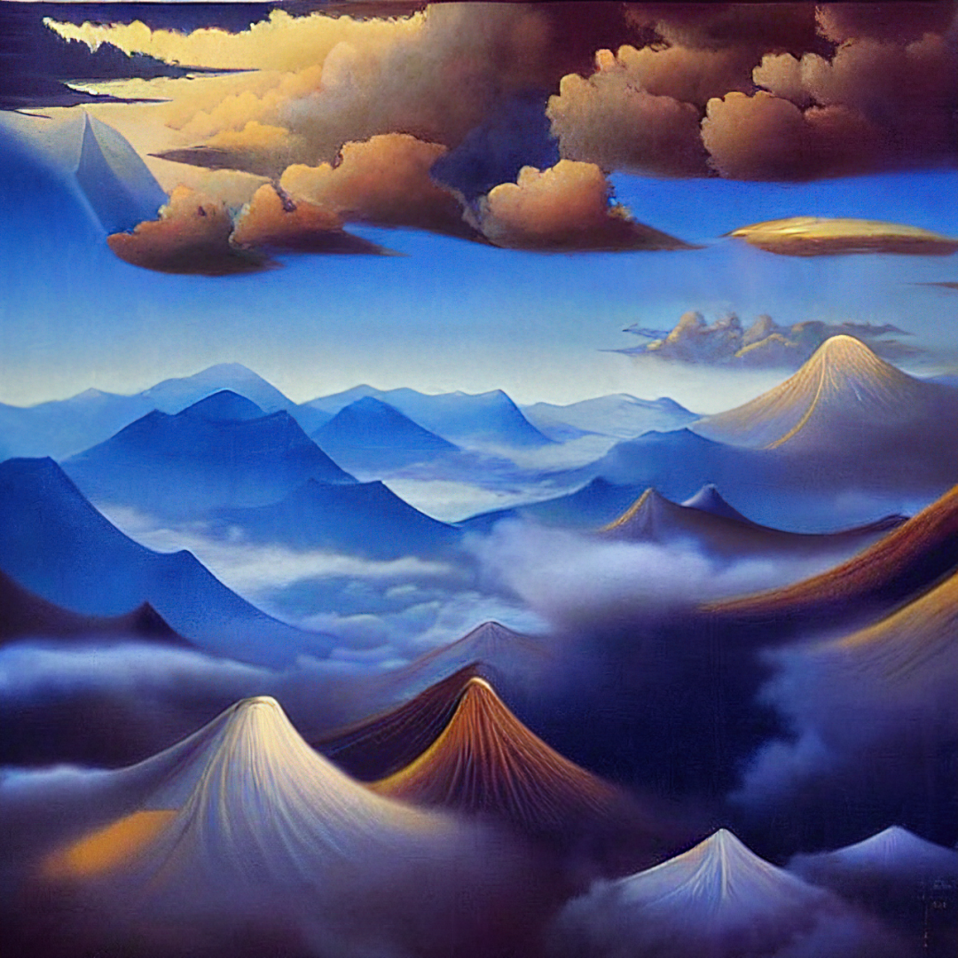 记得之前我透露过,我参加了一个新AI绘画软件的内测。现在距离正式版发布已经迫在眉睫,我也得到了发布图片的授权。今天这篇文章里的所有图片都来自这个名为“Stable Diffusion”的软件,大家可以欣赏一下。所有这些图片都用了相同的描述文字prompt:the clouds of Yunnan by XX, oil on canvas. 云南的云,XX绘制,布面油画。当然,有些画我指定了coloful clouds,这样看起来颜色更为丰富一些。可以看到,非常简单的prompt也可以根据不同画家的画风,给出不同风格的作品来。比如说上边这一张,立即让我想起了香格里拉的岁月,风格就相当写实。Stable Diffusion的一大优点是针对人物造型做了优化,不过今天是《云南的云》专题,所以就没有展示人脸和人体。就我个人使用下的观感,要强于目前的Disco Diffusion,弱于Dall·E 2. 但是速度却着实不慢,所有这些图,平均生成速度是5-6秒。我选取了一系列艺术家,Stable Diffusion在贴合艺术家风格这一点上做得很好,比前面提及的两家感觉都要强一些。但也不排除我爱屋及乌的可能,所以等正式版本放出之后,大家可以自行体验。上面这一张作品我非常满意,让我回想起云南那些山比天高的地区,以及小小的坝子里住满了人家的景象。Stable Diffusion处理得很夸张,但是在我看来恰到好处,确实做到了山比天高,坝如水碗。从这一张开始,接连几张都是参照艺术家Victo Ngai的风格。没办法,我很喜欢她的画风,所以要任性一下。上面这张感觉可以送给那些去云南旅游的读者朋友,它感觉像是你们在云南的回忆。因为我身为少数民族,这辈子就穿过一次民族服装,而且是彝族人的,而且就是为了在石林拍照。