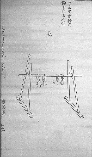 再如《周礼·地官·牛人》提到有悬挂牲肉的架子名曰“互”,郑玄说,此即东汉“屠家悬肉格”。悬肉格作何形制,无图无真相。郑玄据其所见作判断,清代人也拿自己的生活经验当参考。三礼馆讨论时,就有一位感觉所绘之“互”很像“京中卖猪肉钩”,难保合于礼书。