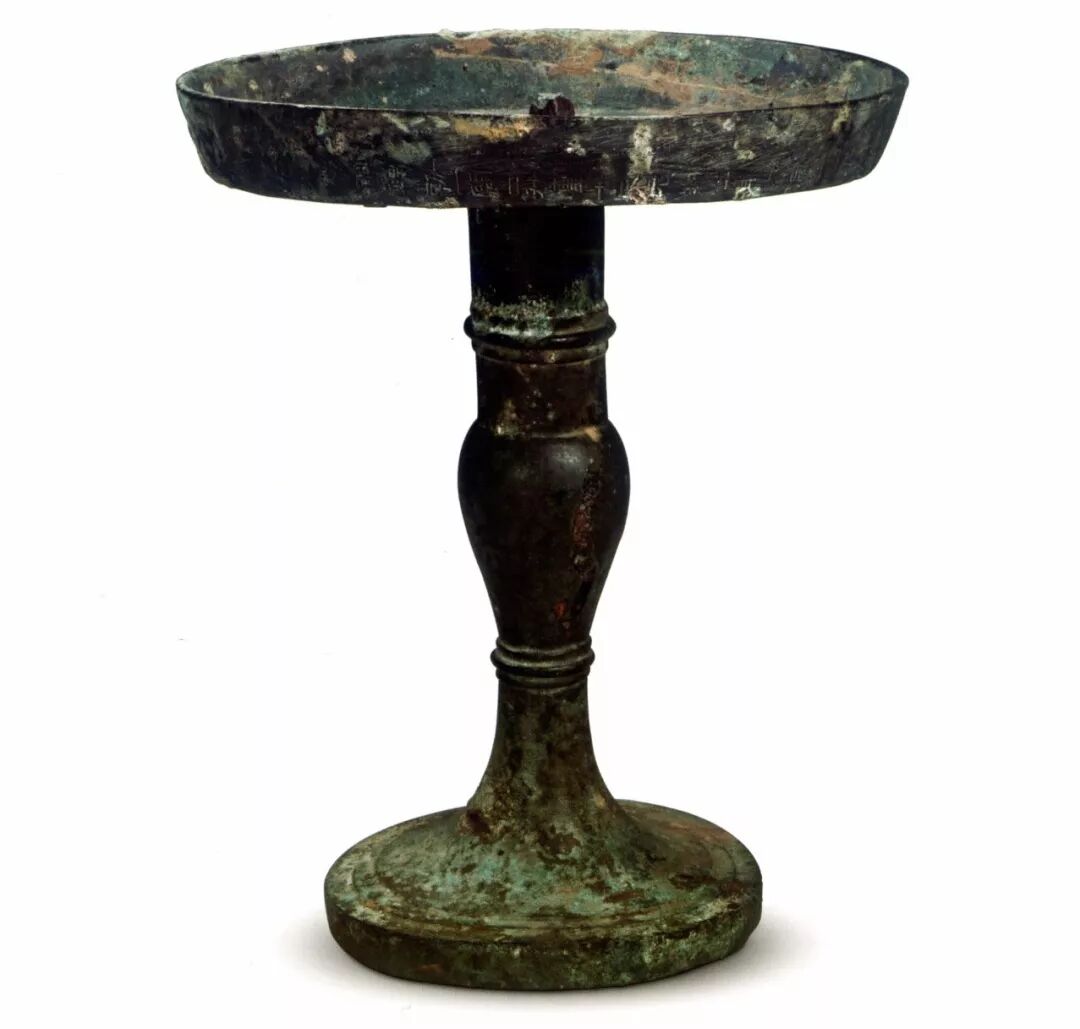 府为上林铜烛㪷(豆)一,容二升,重七斤。元封二年九月乙巳,水衡小府啬夫乐咸,佐渭成隐亚里上造张毋故造。