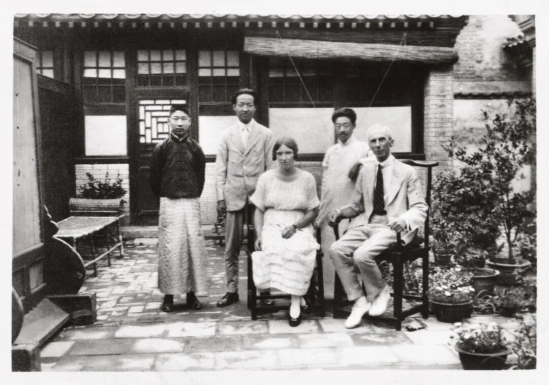赵元任任教清华期间,一个重要的任务就是接待罗素,并在其来华讲学期间担任翻译。这是赵元任与罗素在院子里合影。(约1921年)