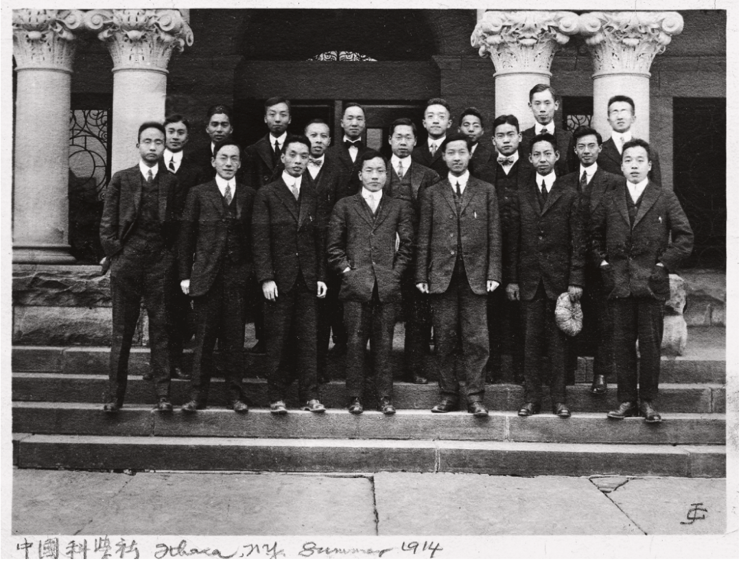 1910年,赵元任参加清华游美学务处第二批赴美公费留学考试,以第二名的成绩被录取。这是清华游美学务处第二批公费(庚款)留美学生合影。(1910年)