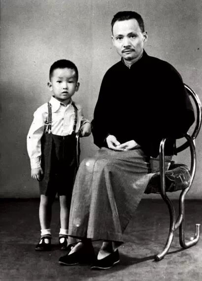 约1942年,作者与祖父周叔弢先生合影于天津。