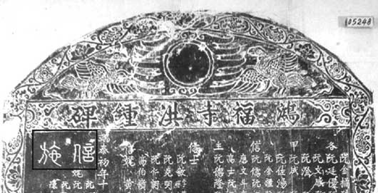早期丁朝、陈朝的碑铭中,有不少关于施田、田界等方面的内容,其中涉及一些专有地名以及度量词语,难以找到对应汉字,不得不使用喃字,如表示地名的“洞个”(《古越村延福寺碑铭》,1157),以及表示“田野”的“垌”字(《多贝垌木牌》,1269);度量词语如表示“丈”的“高”字及表示“亩”的“面”等喃字。以《崇天寺碑》(1331)为例,其中就有不少喃字,如“高”“洞”“面”“伴”“麻雷(即‘鬼’的意思)”等。
