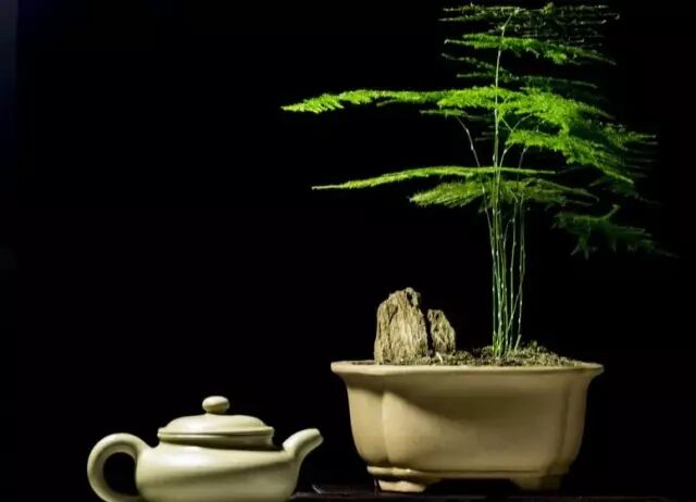 玉峰胡石予师,喜栽文竹,曾谓文竹幽秀深碧,望之如新篁成林,疏密参差,风致自媚,乃盆景之佳者。