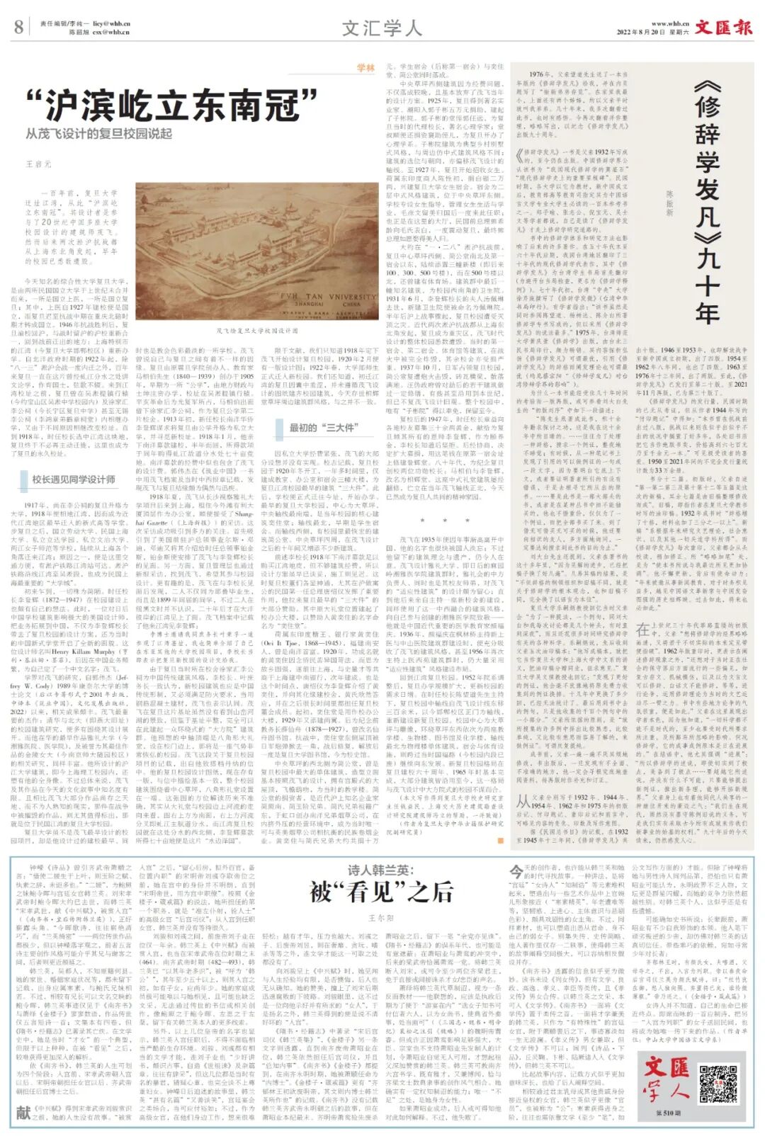 钟嵘《诗品》曾引齐武帝萧赜之言:“借使二媛生于上叶,则玉阶之赋、纨素之辞,未讵多也。”“二媛”,为鲍照之妹鲍令晖与宫廷女官韩兰英。刘宋孝武帝时鲍令晖大约已去世,而韩兰英“宋孝武世,献《中兴赋》,被赏入宫”(《南齐书·皇后传附韩兰英》),正好崭露头角。“令晖歌诗,往往崭绝清巧”,而“兰英绮密”——两位传世作品都极少,但以钟嵘落字观之,前者五言诗主要创作风格可能介乎其兄与谢客之间,后者则更近颜延之。