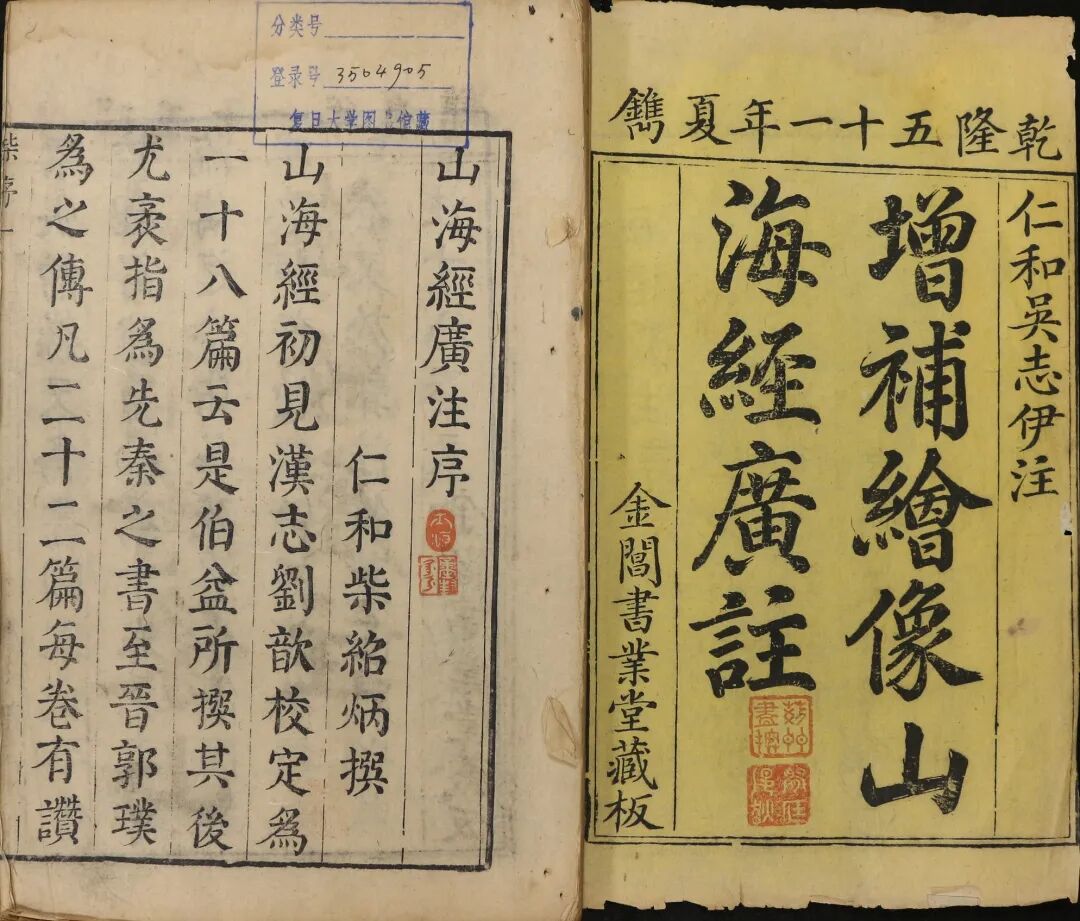 吴志伊《增补绣像山海经广注》有图144幅,引书目500余条,是郭璞注《山海经》后的一部重要著作。谭先生还藏有民国间刘氏嘉业堂刻的吴承志撰《山海经地理今释》。