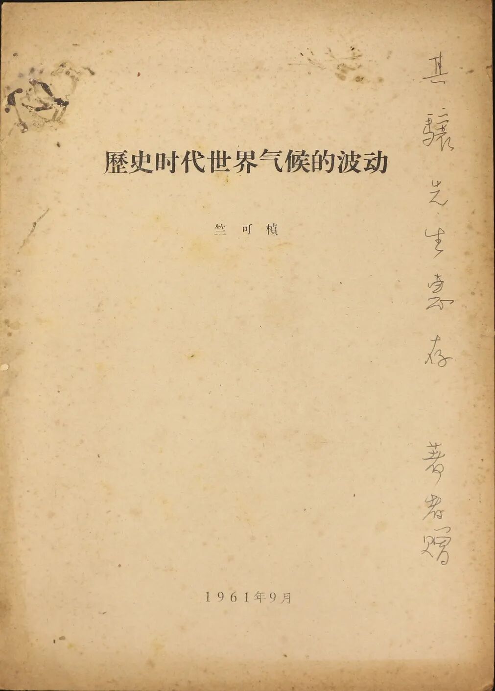 《历史时代世界气候的波动》,竺可桢撰,1961年9月单行本
