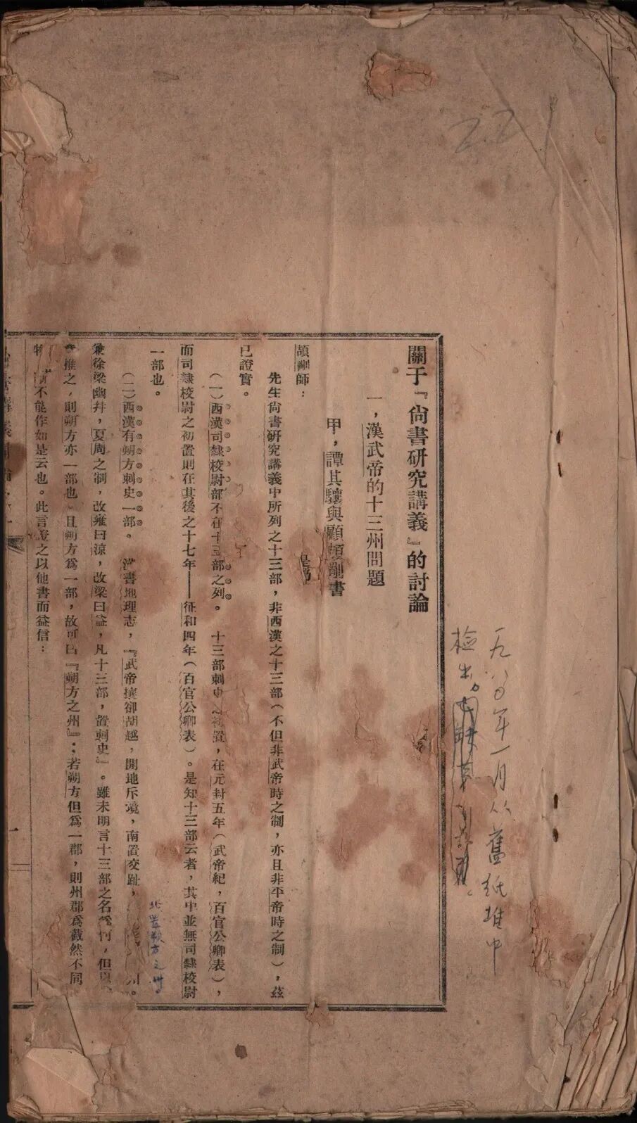 《关于“尚书研究讲义”的讨论》中的“汉武帝的十三州问题”