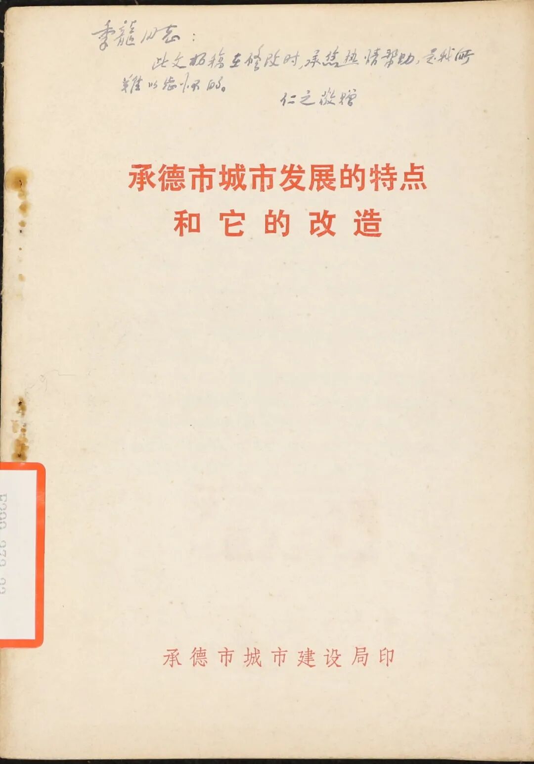 《承德市城市发展的特点和它的改造》,侯仁之撰,承德市城市建设局1975年印行